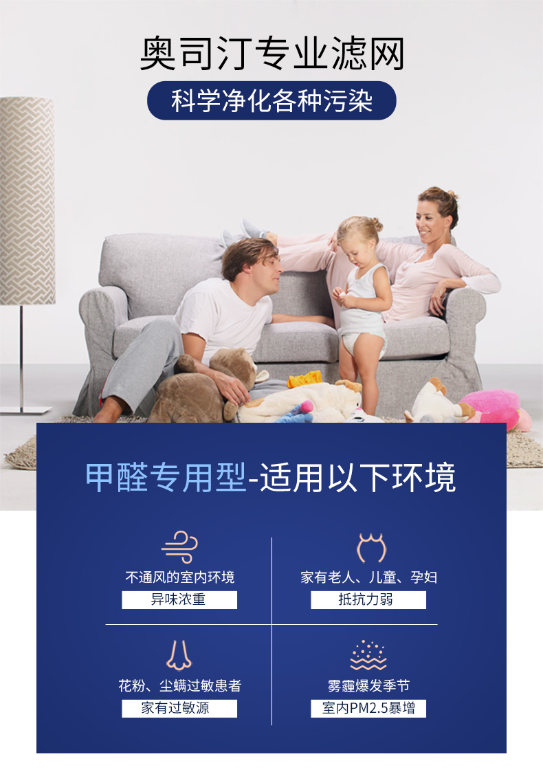- 功能適用: 有效除甲醛/苯/TVOC/有毒有害化學氣體/煙味異味/除霾抑菌