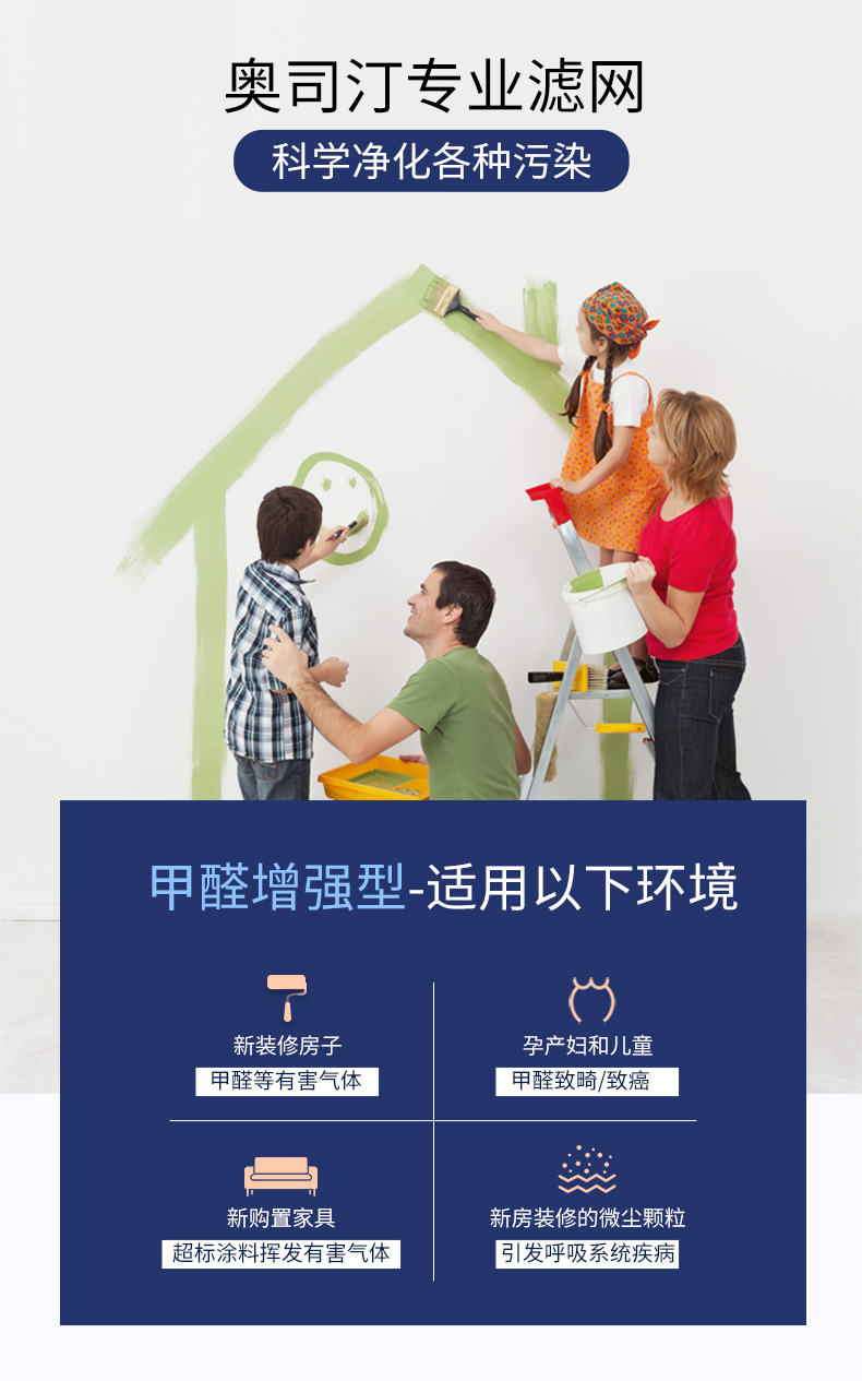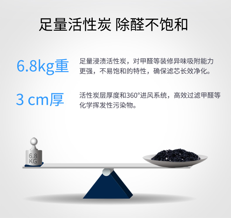 - 功能適用: 加強除甲醛/苯/TVOC/有毒有害化學(xué)氣體/煙味異味/除霾抑菌/防過敏源