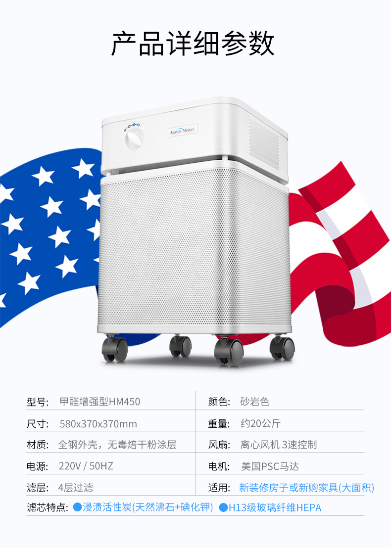 【美國原裝進口】推薦辦公區(qū)/大平層/廠房使用 適用中大面積空間 - 奧司汀空氣凈化器HM450