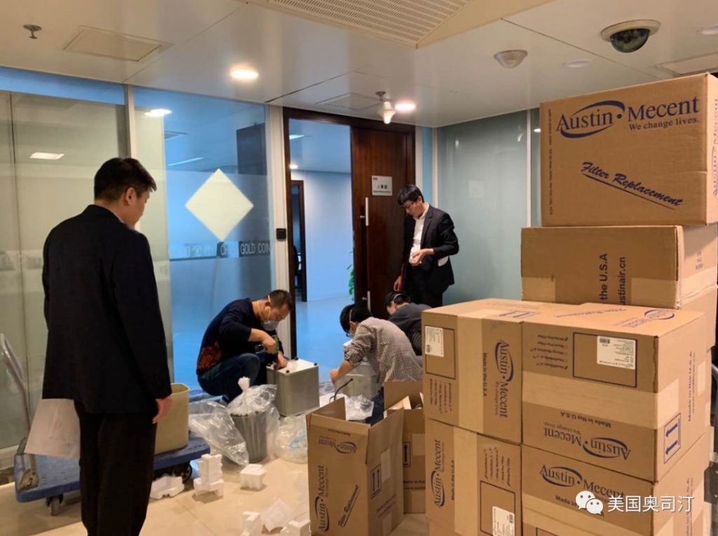 2019年12月,當下霧霾天氣頻發,剛剛中國某金幣公司,為保障員工呼吸健康,再次采購百臺美國奧司汀空氣凈化器HM400系列和HM200系列濾芯,進行全“芯”更換。
